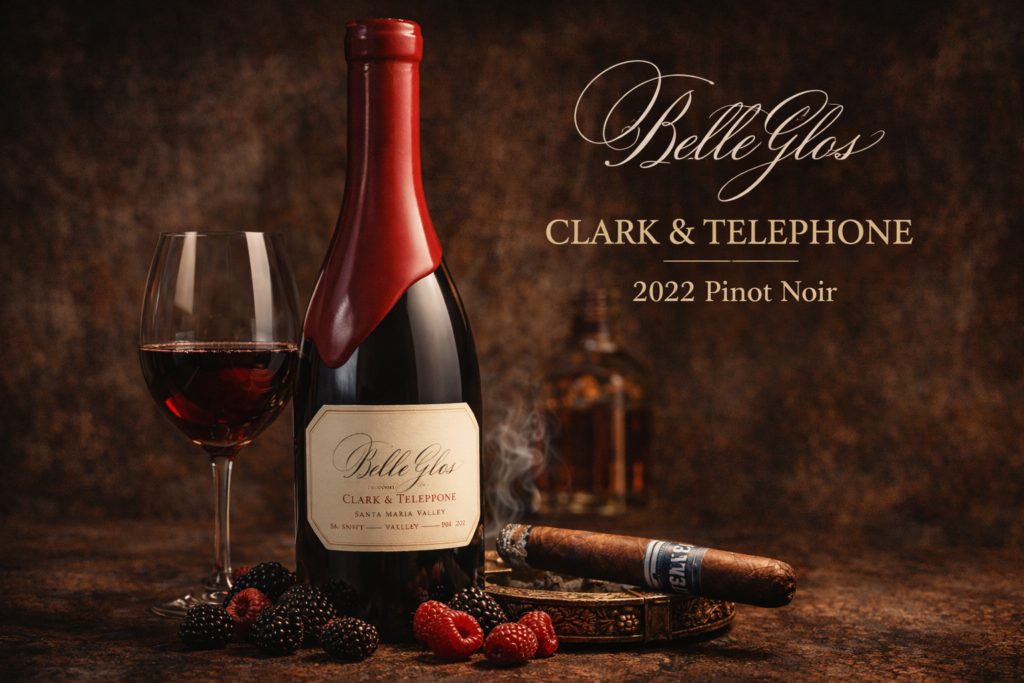 For this tasting, I paired the cigar with Belle Glos Clark & Telephone Pinot Noir 2022, a richly textured California Pinot Noir that beautifully complements the nuanced profile of the Alma del Cielo. This wine opens with layers of ripe dark fruit—cranberry, raspberry, and blackberry—interwoven with baking spice and cedar-driven complexity, delivering a lush, velvety palate and a warm, structured finish. The General Wine Company